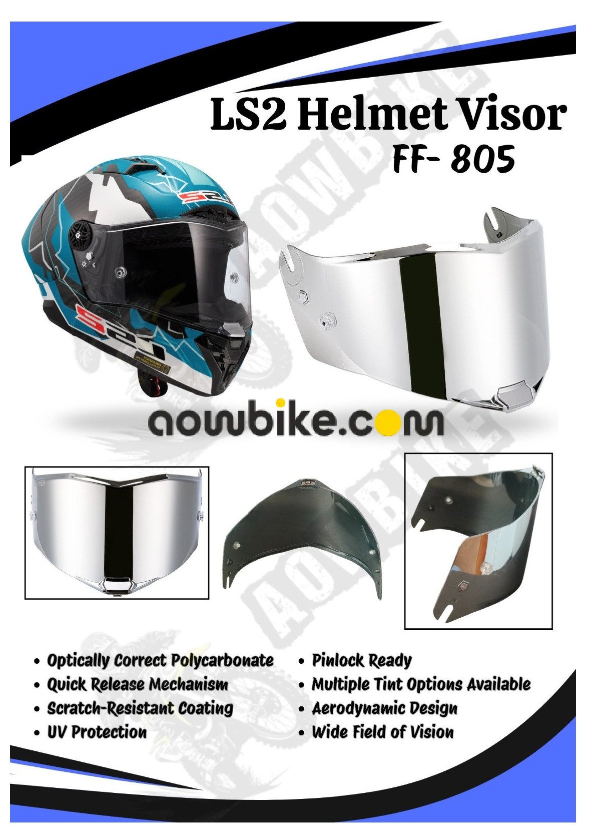 Helmet Visor Glass For LS2. MODELS : 805 (SILVER)